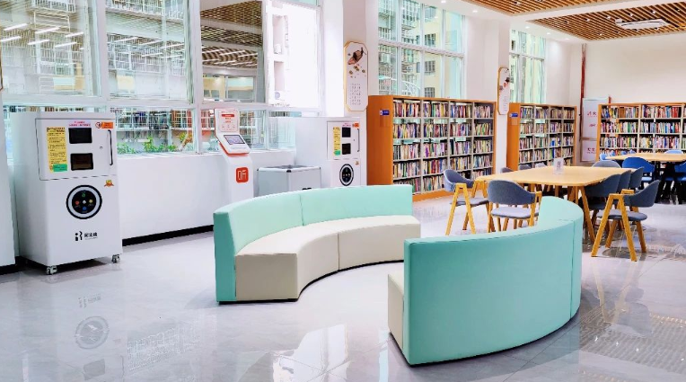 踩在印着古航海图的地板上,仿佛脚下流转着千年航海故事;抬头看,湛蓝色波浪形亚克力书架蜿蜒舒展,承载量达2万册。从《海上丝绸之路文献集成》《图说福建与海上丝绸之路》丛书等国家级重点出版项目,到绘着热带鱼的儿童绘本,随手一翻都是海洋的奥秘;40米长的LED柔性曲面屏像一块“海底窗口”,循环播放着五彩珊瑚礁、成群游过的鱼群。