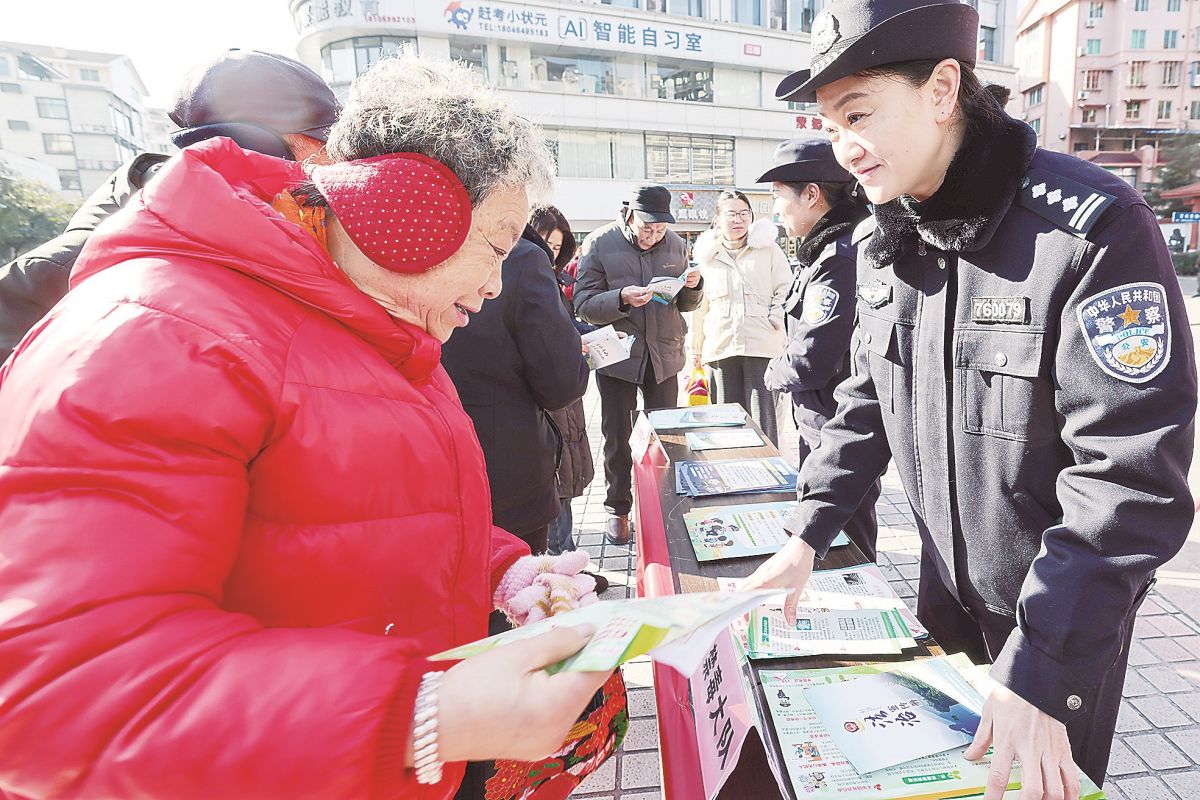 10日,武夷山市公安局民警向居民讲解法律法规、防范电信网络诈骗知识。邱汝泉 摄
