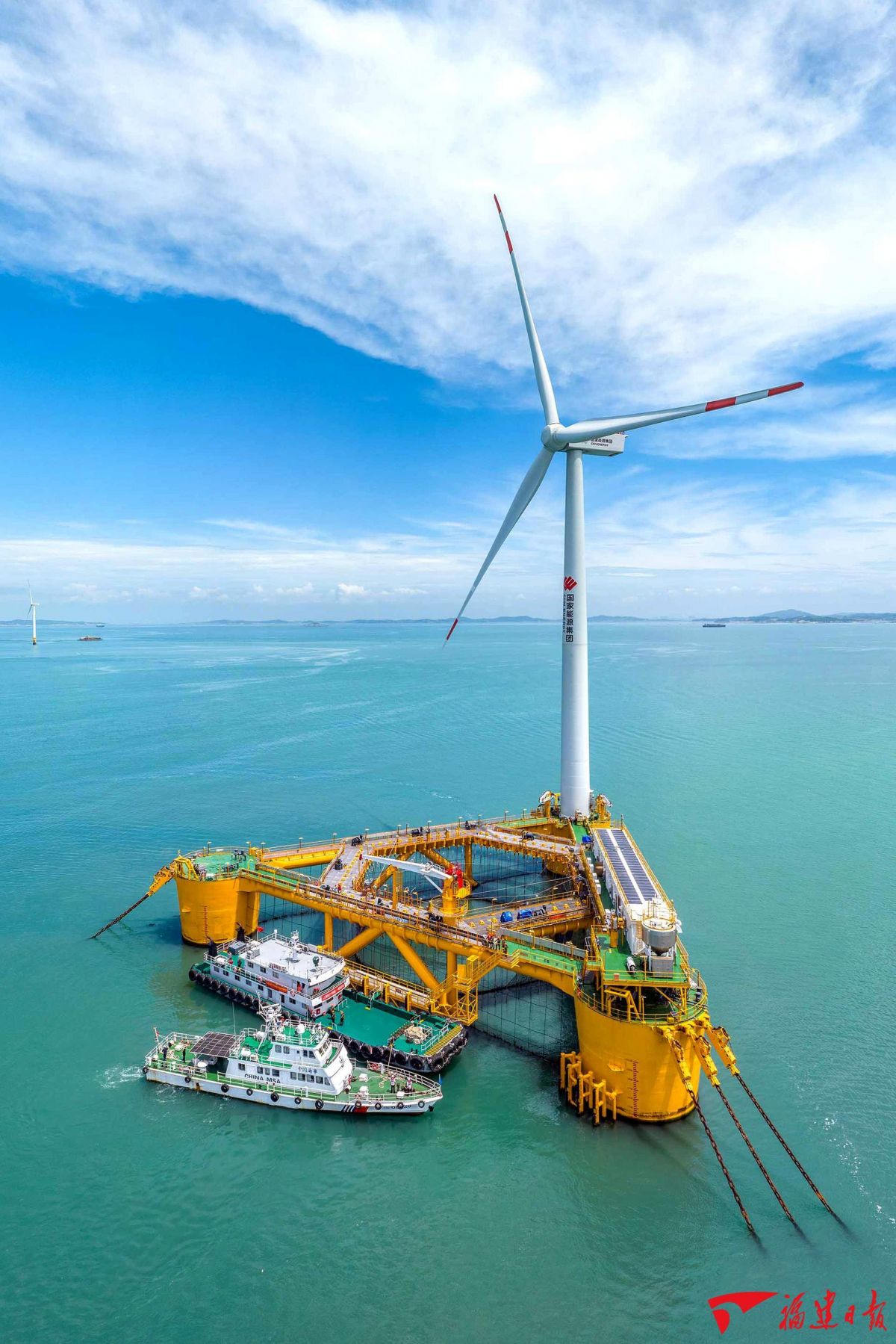 “十四五”期间,福建单位地区生产总值能源消耗累计下降17%,预计超额完成国家下达任务。图为2024年6月28日,全球首座风电、光伏与渔业养殖一体化漂浮式平台——“国能共享号”在莆田市南日岛国家级海洋牧场示范区正式投产。蔡昊 摄