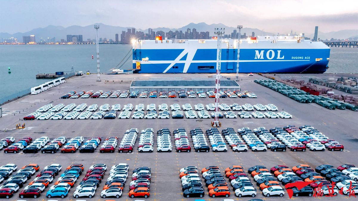 “十四五”以来,福建聚焦“碳达峰、碳中和”目标,推动新能源汽车、电动船舶、动力电池三大核心领域实现高质量发展。图为2023年8月10日,1500台上汽新能源汽车即将装船发往澳洲,创下厦门现代码头出口澳洲商品车单次最大批量。林梓健 摄