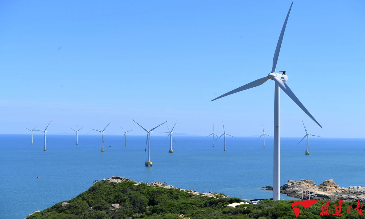 “十四五”期间,福建清洁能源装机占比超65%,领跑绿色发展。图为2022年8月19日拍摄的平潭海上风电项目。游庆辉 摄