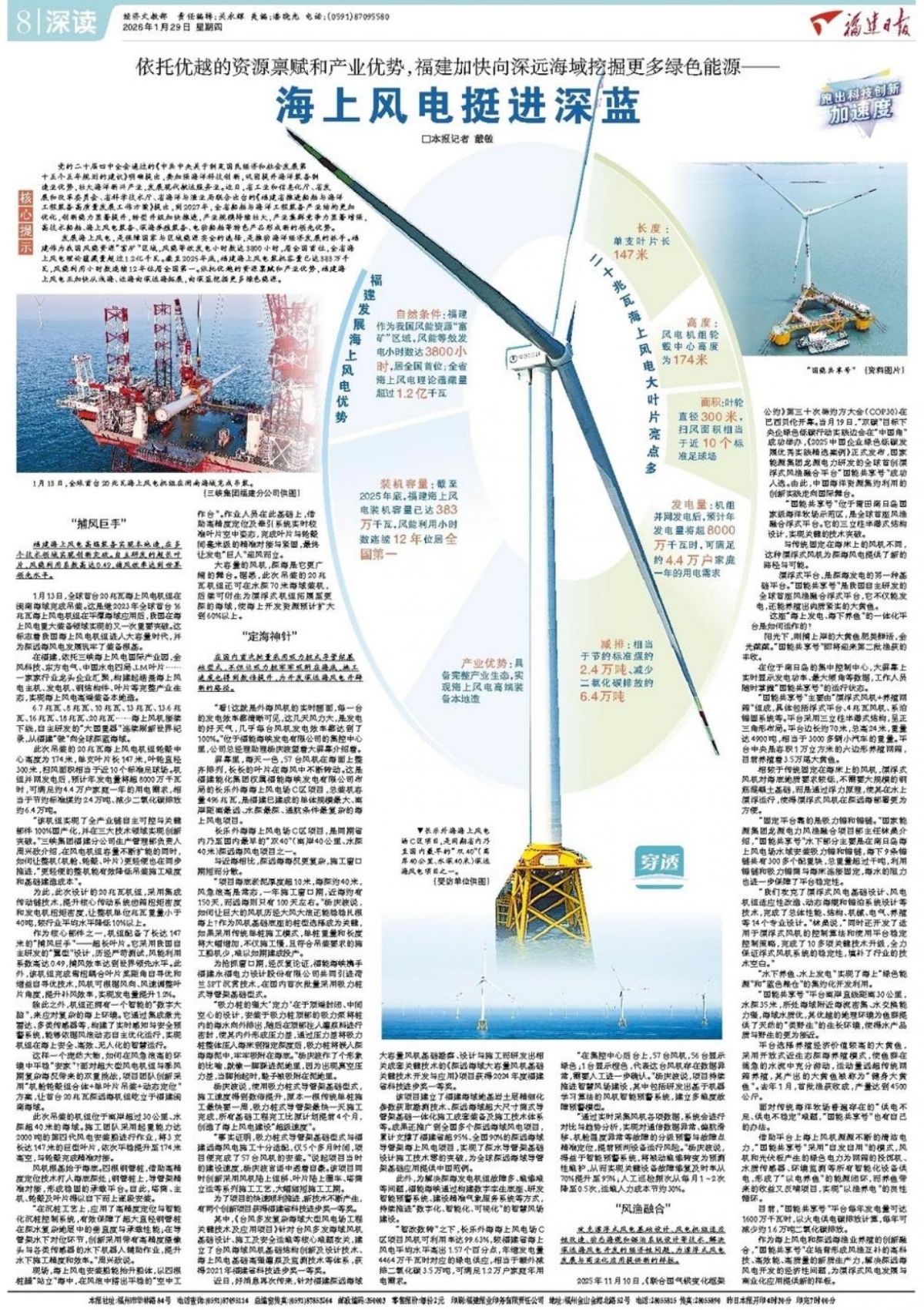 福建海上风电高端装备实现本地造,在多个技术领域实现创新突破。自主研发的超长叶片,风能利用系数高达0.49,捕风效率达到世界领先水平。