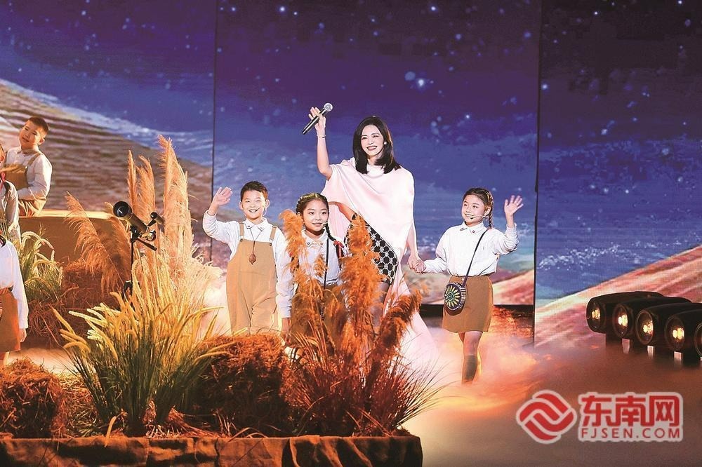 来自宁夏银川市闽宁第一小学山海情合唱团的孩子们与福建籍演员姚晨共同演绎歌曲《宁夏》。