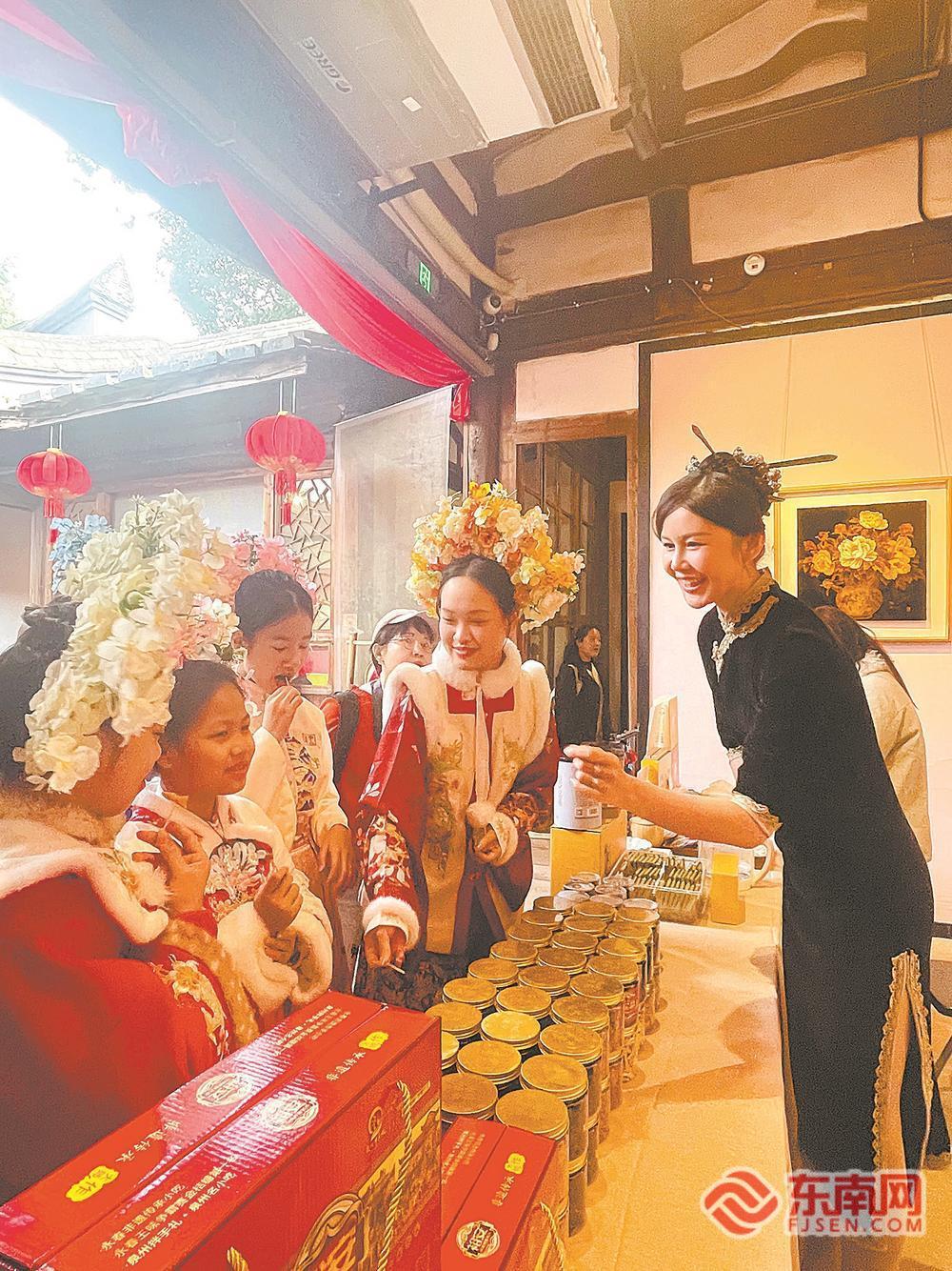 2月19日,由省文旅厅主办、福建省艺术馆(福建省非物质文化遗产保护中心)承办的“清新福建·共享非遗贺新春”春节系列活动在省非遗博览苑及林徽因主题馆举行。图为游客体验簪花、三条簪等非遗发艺。