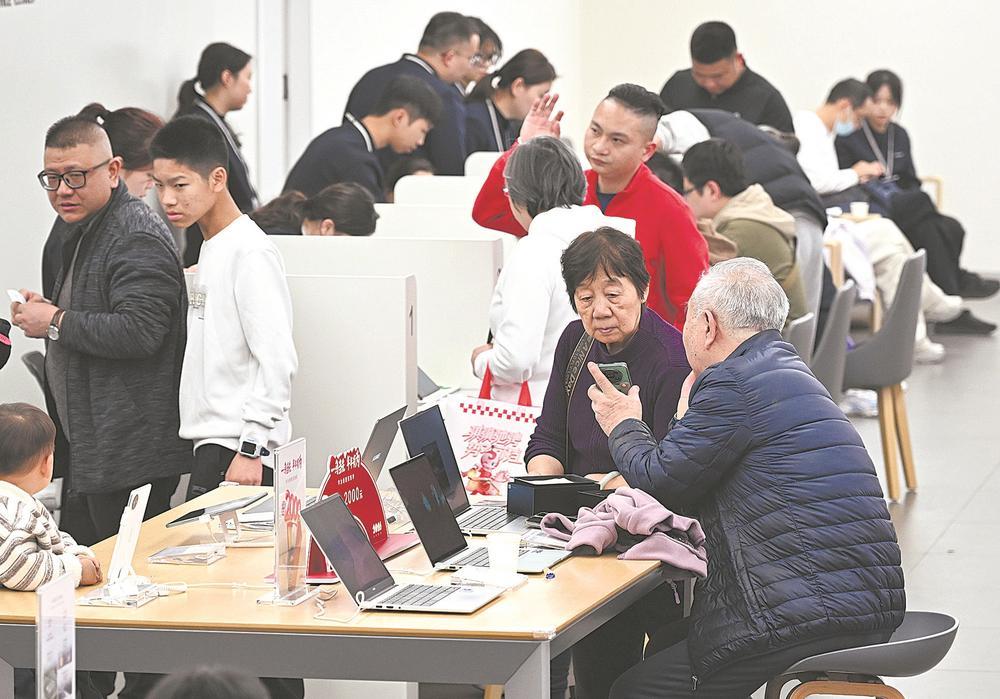 2月19日,福州八一七路上的数码卖场人气火爆,消费者踊跃参与以旧换新活动。记者 游庆辉 摄