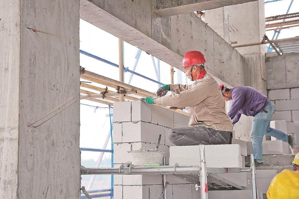春节期间,浦城县浦潭产业园生物制造中试基地建设项目现场,工人正加紧进行砌体、外墙粉刷等作业。福建日报记者 吴旭涛 通讯员 柳浪漫 摄