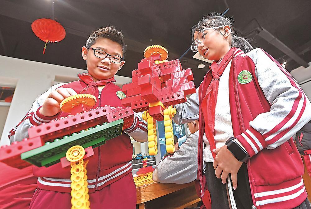 2月28日,在元宵佳节即将来临之际,“智趣元宵 点亮童心”元宵节主题活动在泉港区科技馆举行。35名留守儿童走进科技馆,在“科技+传统文化”的活动中,感受快乐和温暖。图为孩子展示自己搭建的乐高灯笼。福建日报通讯员 林弘梫 摄影报道