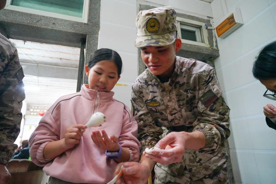 大家一起搓汤圆、话家常。武警泉州支队供图