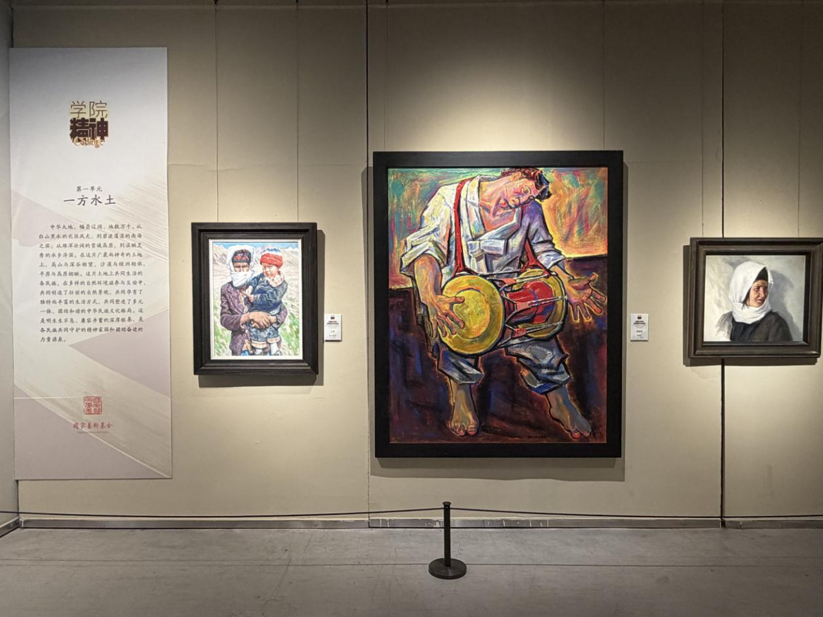 步入展厅,一股浓郁的民族文化气息扑面而来。展览打破常规展陈模式,以“一方水土”“一方人”“民情民生”三大篇章串联起整个叙事空间:从雪域高原的雄浑到南国水乡的温婉,从草原牧歌的悠扬到山寨梯田的壮美,百余件来自全国20余所高等美术院校的精品力作,铺陈开一幅幅生动立体的中华民族“全家福”。国画的笔墨意蕴、油画的色彩张力、版画的刚劲线条、雕塑的空间叙事……多元艺术形式在此交汇,既呈现了学院派创作的严谨探索,又饱含着对民族文化的深情凝视。