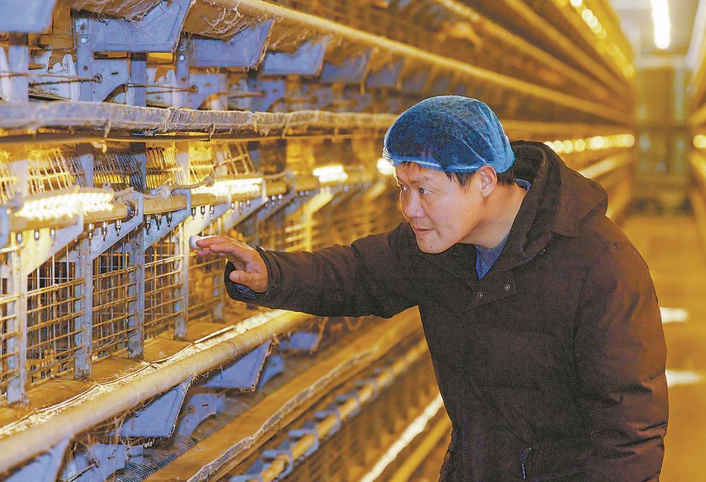 工人在察看蛋鸭的生长情况。