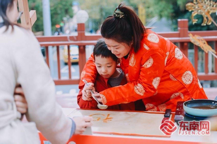 本次活动紧扣“福文化”与闽都非遗特色主题,主办方在现场设置了丰富多样的互动体验环节,在柳杉王公园大门左侧及主视觉喷绘前,“绘骏马 迎新春”彩绘互动体验区人气满满,将新年祈福与彩绘美学相融,游客们在手工艺者的指导下,亲手绘制寓意吉祥的马年生肖图案,在艺术创作中寄托对新年的美好祝愿。