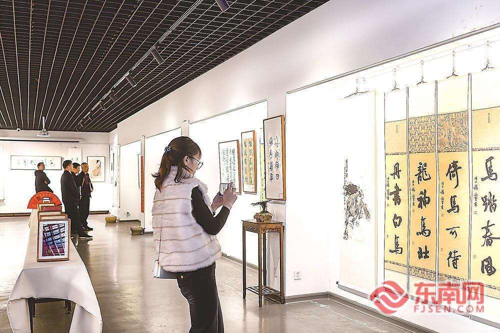 1日,“万川明月”七人书画展在福州市温泉公园闽都艺术馆开幕,展览将持续至3月31日,为市民献上一席雅致的文化盛宴。据了解,展览展出了来自省书法家协会的张再之、孙建国、施云、姜武寅、曾兴宗、陈亮和肖卫华等7名作者的书法、绘画作品近80幅,涵盖斗方、对联、扇面等多种形式,展现了艺术家们对艺术语言的探索和各自的美学理念。图为展览现场。(福建日报记者 施辰静 摄)