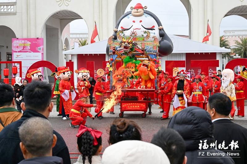 仪式感四:非遗表演闹元宵。在连江县,元宵节有仁山拉线狮非遗表演。与传统舞狮不同,仁山拉线狮不用人钻入狮身中上下翻腾,而是用滑轮、钢丝拉线连接舞动狮子,通过艺人们的密切配合,控制狮子起舞腾跃。