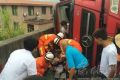 2015-06-01 11:08 来源:福州晚报昨日清晨7时许,长乐市猴航线后安村公交车站附近,一辆载着废铁渣的挂车在经过上坡转弯路口时,由于车速较快导致车辆失控发生侧翻,滑行十余米后才停下来。 挂车在转...