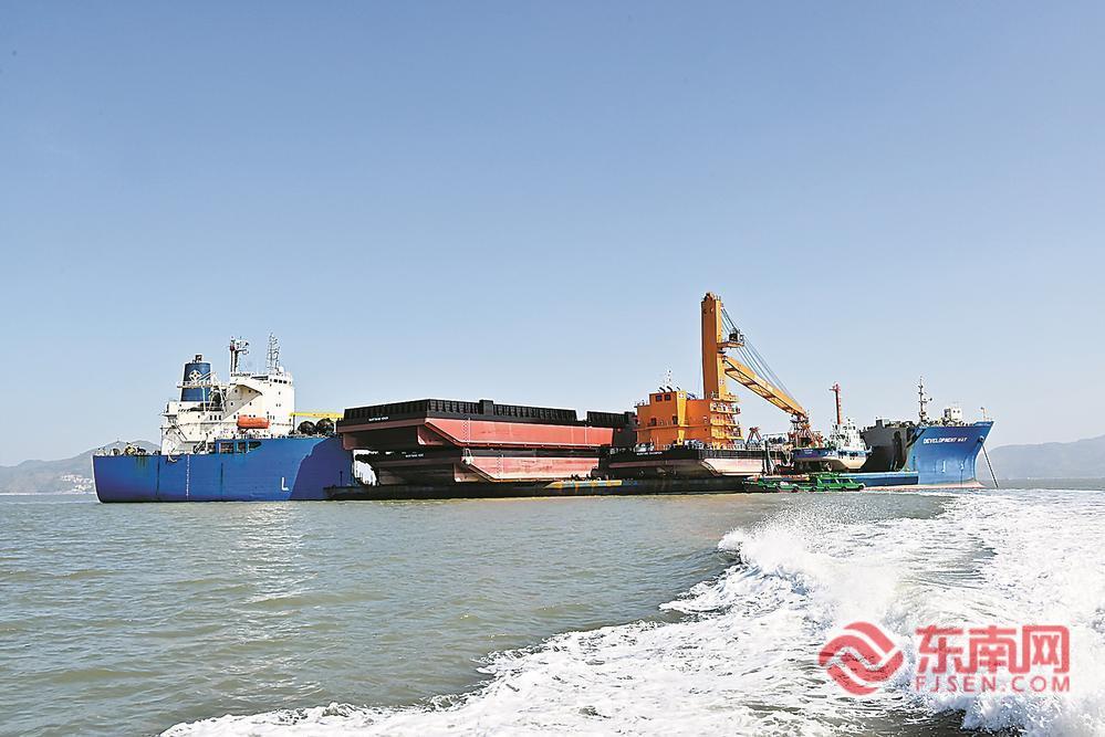 日前,从宁德港离开的巴拿马籍大型半潜船“发展之路”轮,载着5艘价值约1亿元的工程类船舶行驶在海面上,预计1月13日运抵共建“一带一路”国家几内亚。