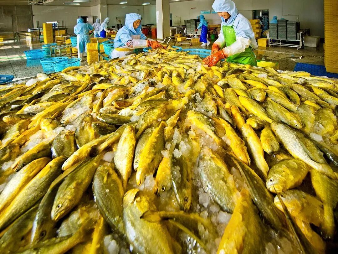 宁德大黄鱼精深加工企业的车间里,工人在处理大黄鱼 图源:闽东日报