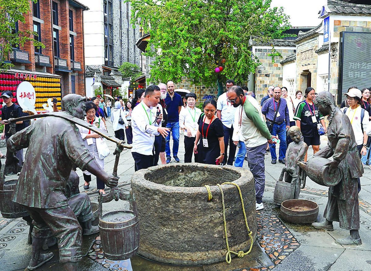 在建瓯市铁井栏—紫芝街历史文化街区,古建筑里装满了名士故事,令专家学者们沉浸其中——雀替咖啡馆里,花纹精美的雀替与智能机器人咖啡师冲泡的醇香咖啡引起阵阵赞叹;尚书井广场上,专家学者们仔细端详水井周边的图样,了解设计中蕴含的“福禄寿喜”寓意和实用价值;殷闽文化馆内,一件件藏品安静地述说着“千年建州”的文脉赓续……
