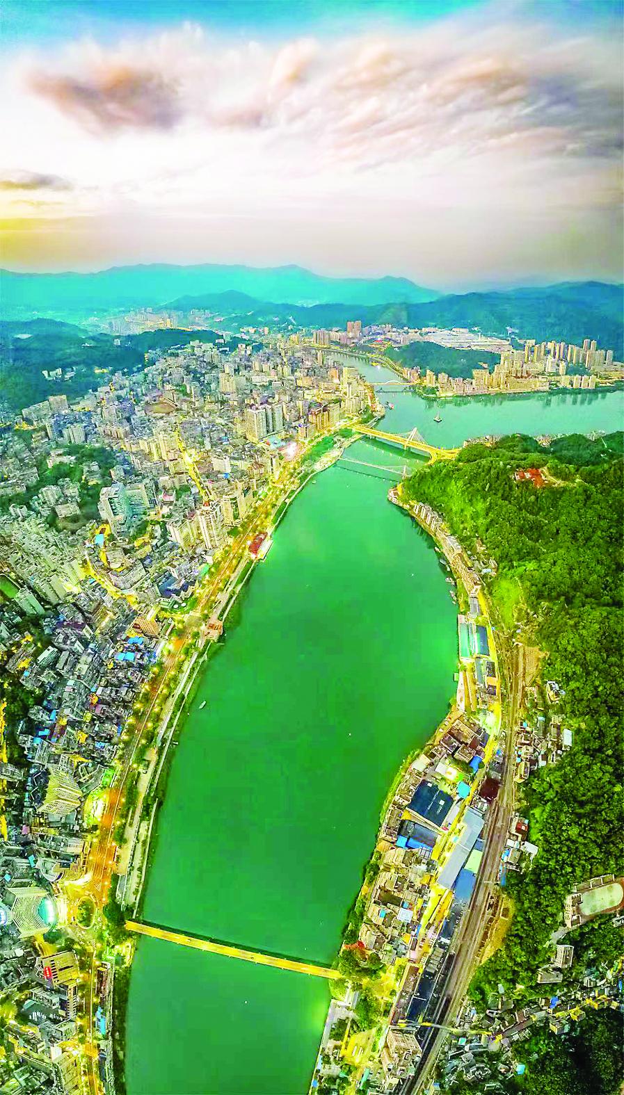夜幕降临的闽江源头,三江六岸灯火交相辉映。(罗南军 摄)