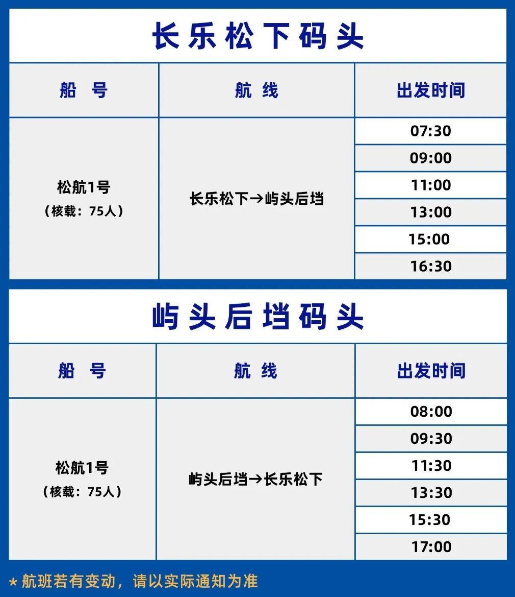 因我司“岚屿渡6号”客渡船计划进行换证检验(坞修),自2025年12月29日起停运,具体复航运营时间另行通知。停运期间,长乐松下码头前往屿头离岛渡运航班由“松航1号”客渡船承担运行任务,请大家相互转告,由此给您带来的不便,敬请谅解!服务咨询电话:0591-88887929或咨询市民热线12345。