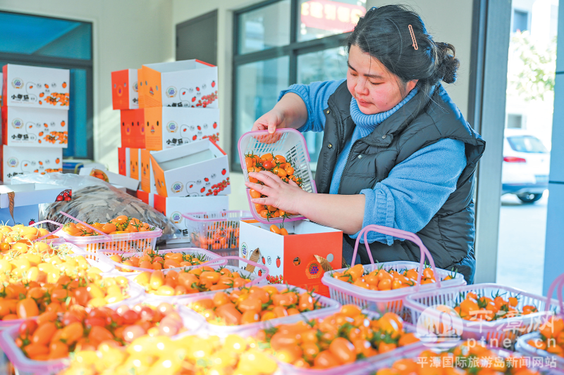 工作人员正在打包采摘下来的小番茄。