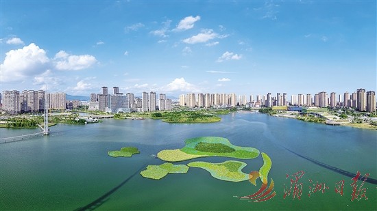 玉湖公园内的“浮动湿地”有效净化水质,优化生态景观。全媒体记者 陈斌 摄