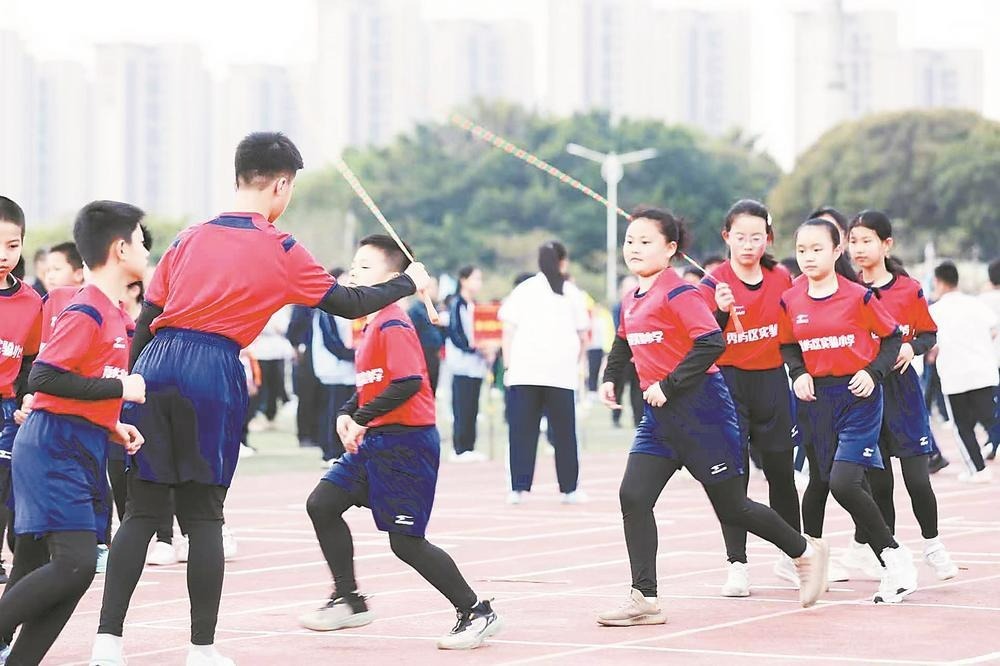 在“五育融合”背景下,体育可作为贯通德育、智育、美育与劳育的重要纽带。近年来,秀屿区教育部门先后组织“班班有歌声”、校园广播操比赛以及万人跳绳等“一学年一项目”,通过“校级常规赛、片区选拔赛、区级总决赛”三级赛事体系,营造全员参与的校园体育文化,年均参赛学生超6万人次。