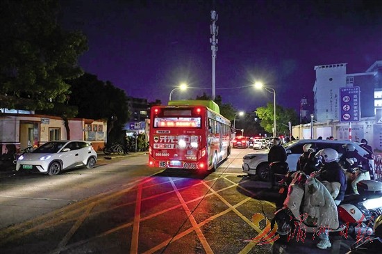 ▲学生在晚自习结束后,乘坐校园定制公交专线回家。全媒体记者 杨怡玲 摄