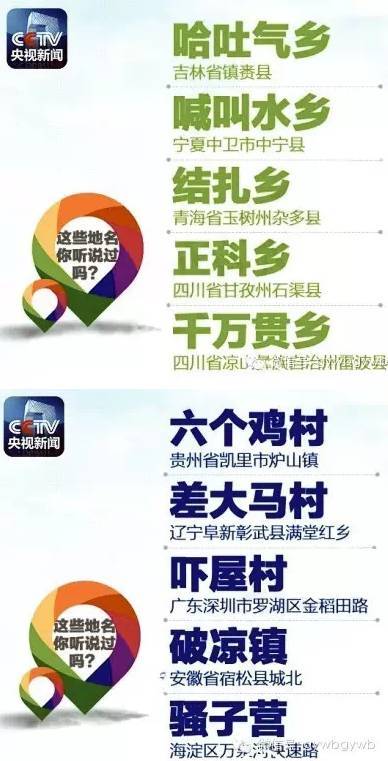 “2014年,全国第二次地名普查活动期间,央视向全国网友发起“奇葩地名”征集活动,共总结出全国59个最为奇葩的地名。