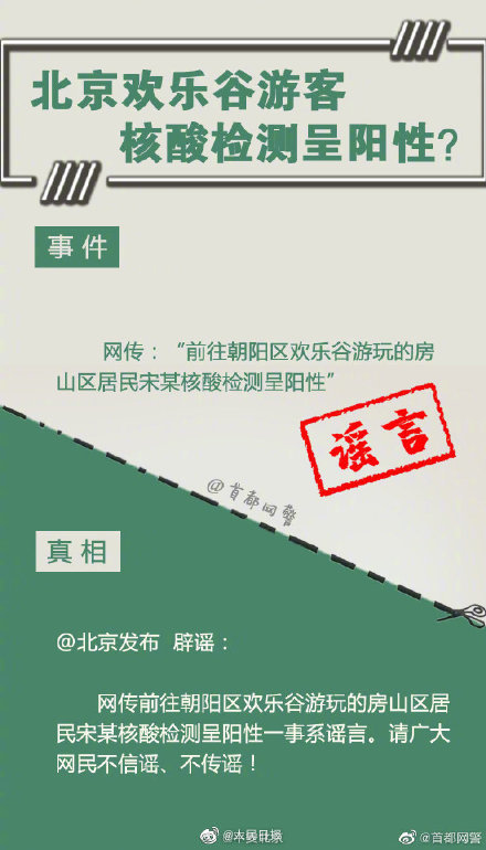 【转发辟谣!北京疫情这些谣言别信】北京欢乐谷游客核酸检测呈阳性?河北燕郊一家三口发烧?北京育民小学已有学生确诊新冠肺炎?北京灯市口稻香村出现确诊病例?这些全是谣言。@首都网警呼吁:防控不能松懈,重视但不恐慌。转发提醒!