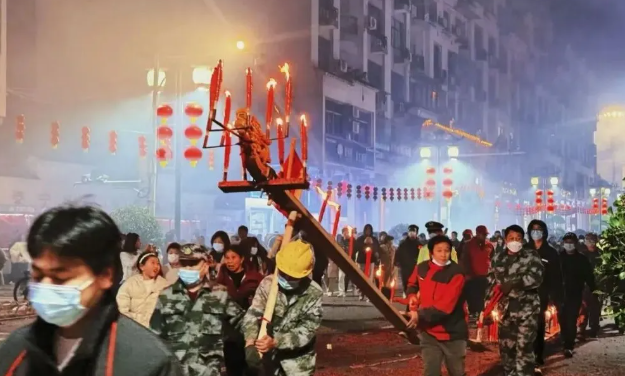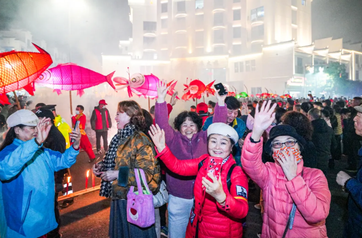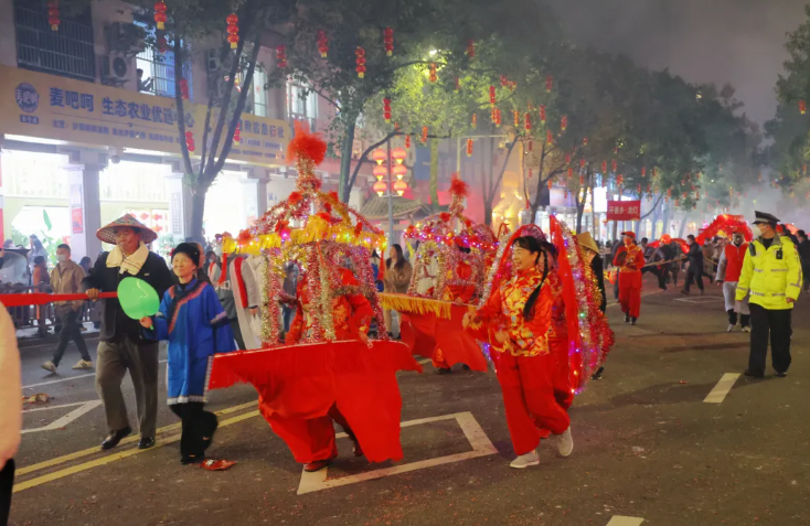 从市民广场到状元街,从东洲桥到和平中街……一路灯影摇曳、锣鼓铿锵,璀璨的灯海与欢腾的人群相映成趣,勾勒出一幅喜庆祥和的元宵民俗画卷,吸引了无数市民游客驻足观赏、拍照打卡,沉浸式体验泰宁非遗民俗的独特魅力。