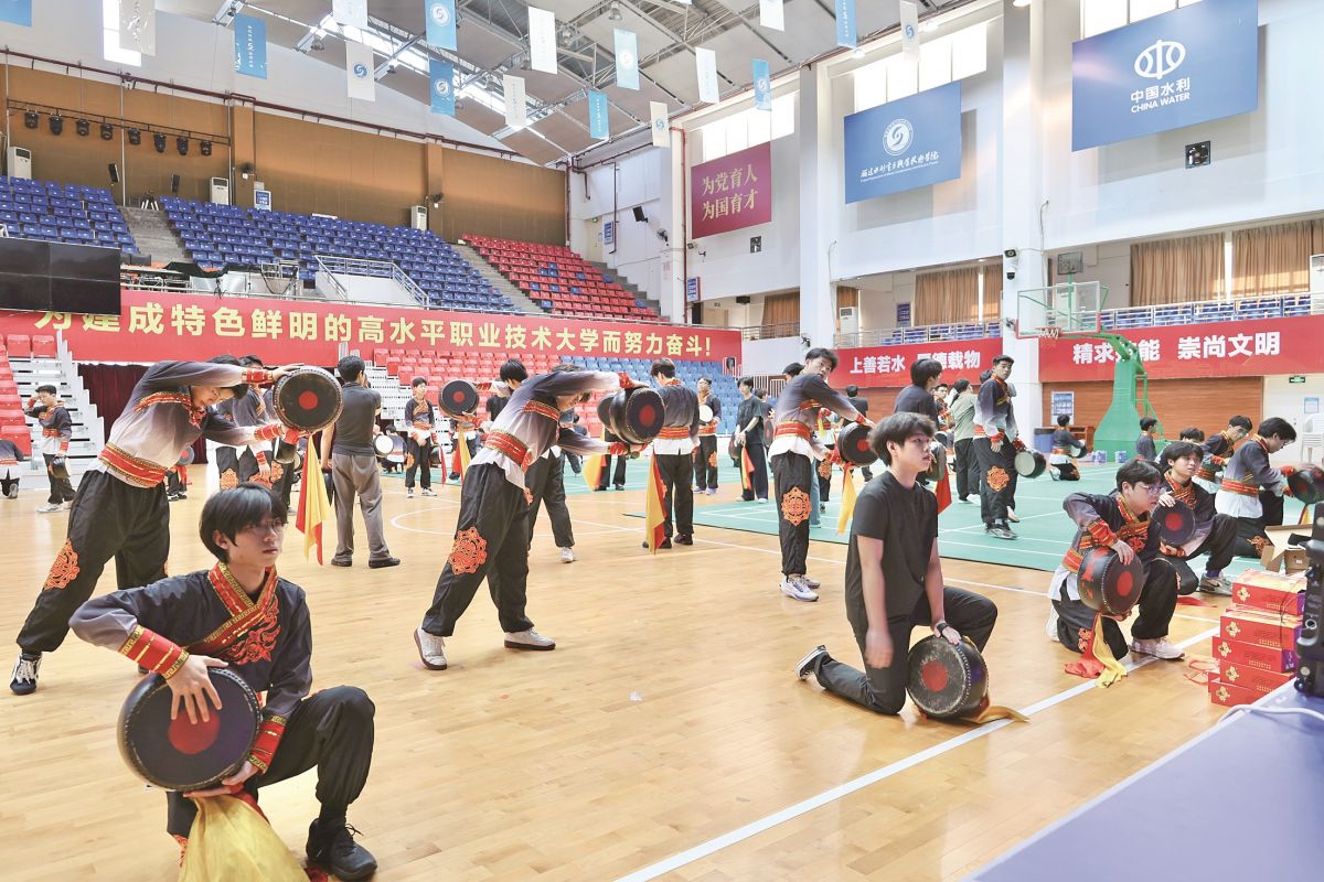 4月26日,2026年福建省城市足球联赛(简称“闽超”)三明赛区揭幕战开赛仪式及中场啦啦操表演,在永安市体育中心和福建水利电力职业技术学院路港体育馆同步开展排练。全体演职人员以饱满的热情和精益求精的态度投入筹备,力争为广大球迷呈现一场精彩纷呈的视听盛宴。图为演员们正在排练节目《旌鼓飞扬》。