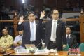2014-10-22 16:16 来源:闽南网10月22日,菲律宾参议院蓝带小组委员会召开听证会,调查菲国副总统比奈被指涉嫌贪污案。图为被指为菲国副总统比奈家族充当“人头户”的华商林江扬与检...