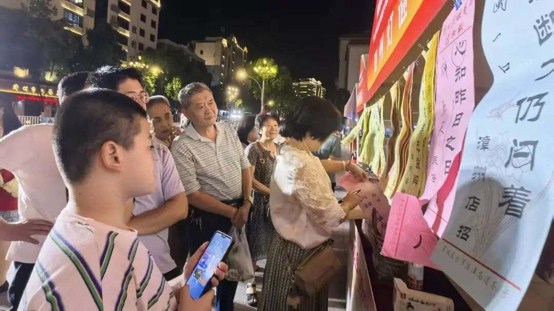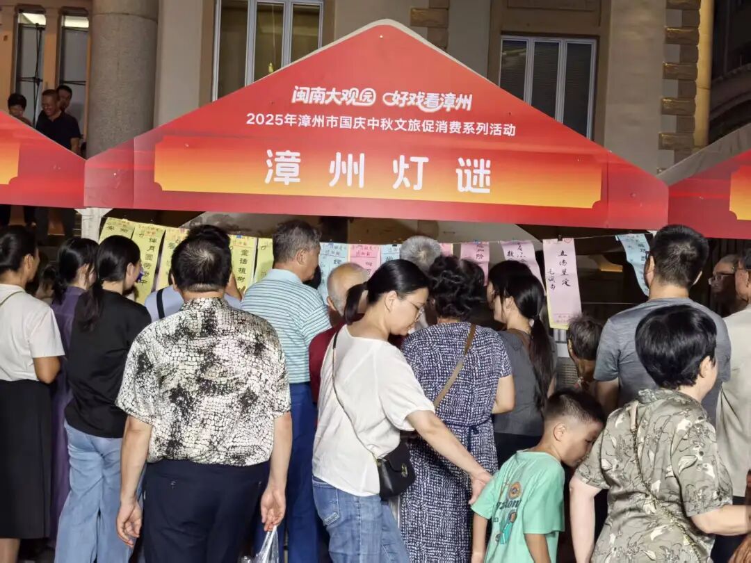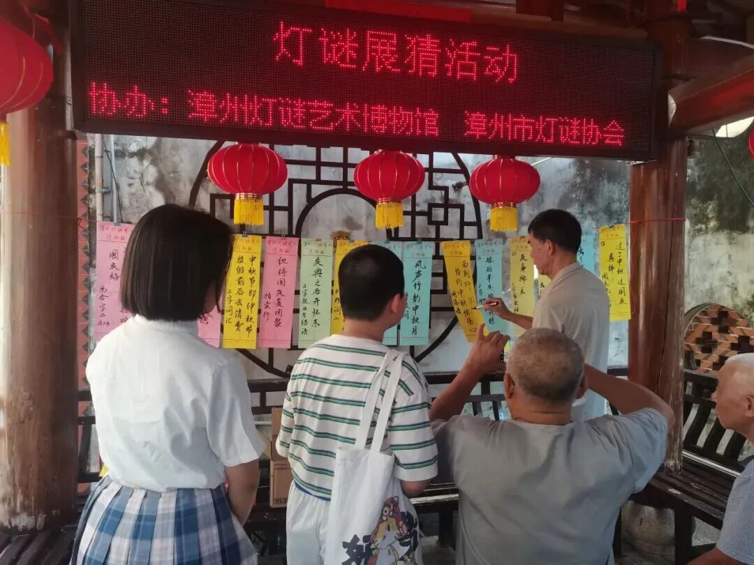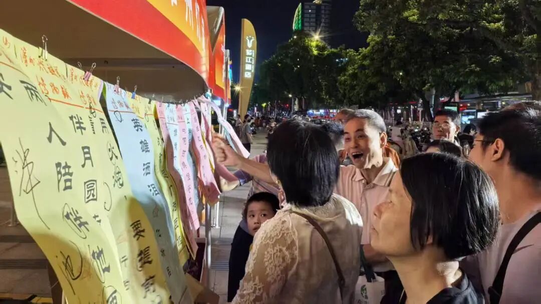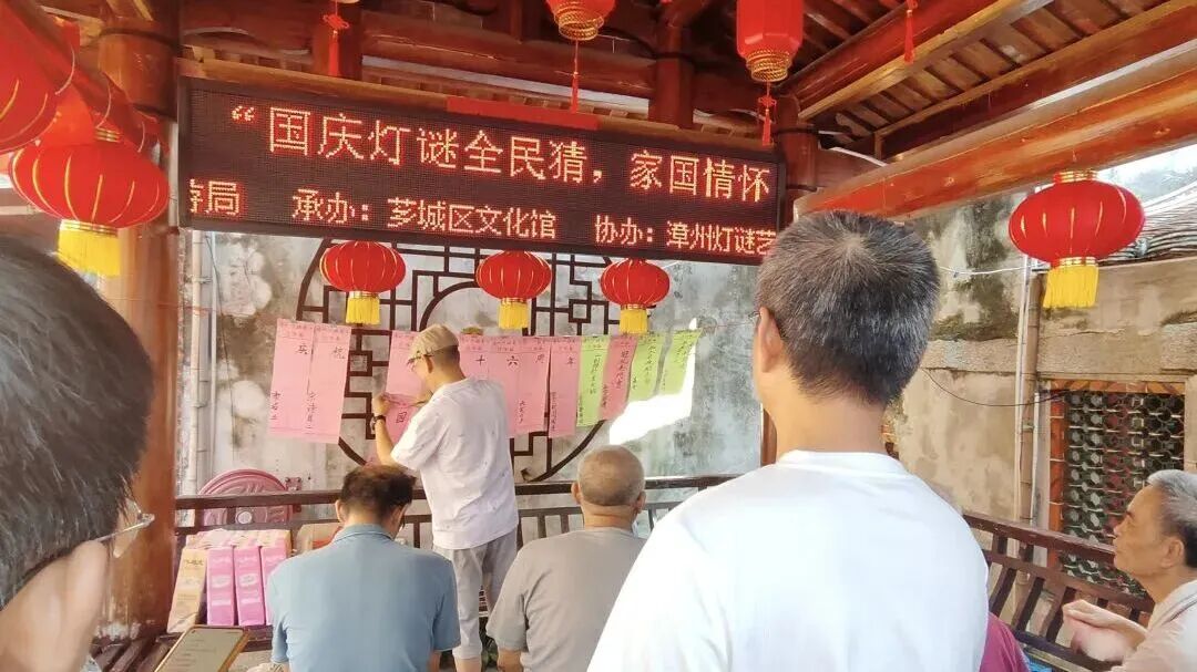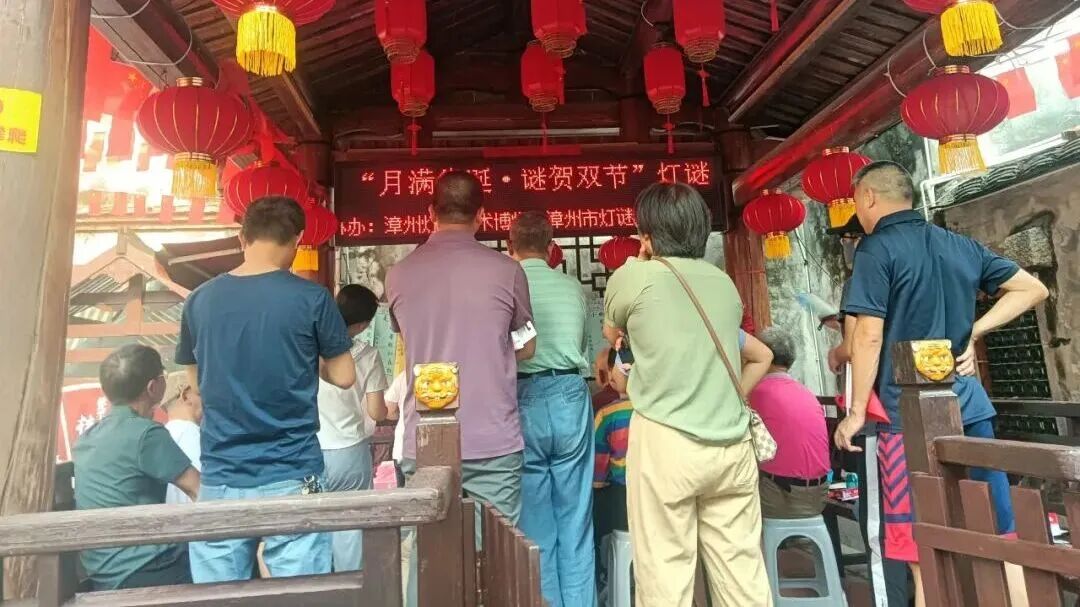 10月1日至3日晚,闽南大观园·好戏看漳州文旅促消费系列活动在人民剧场门口举行。活动现场设置灯谜展猜专区,现场悬挂百条融合中秋国庆元素的谜笺,吸引众多市民驻足竞猜。