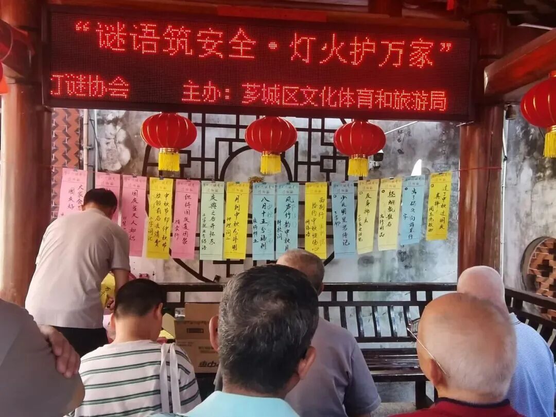 现场人声鼎沸,既有白发老者执卷沉思,也有孩童蹦跳读谜,猜中者欢欣领奖,未解者相互探讨,洋溢着浓厚的节日氛围。