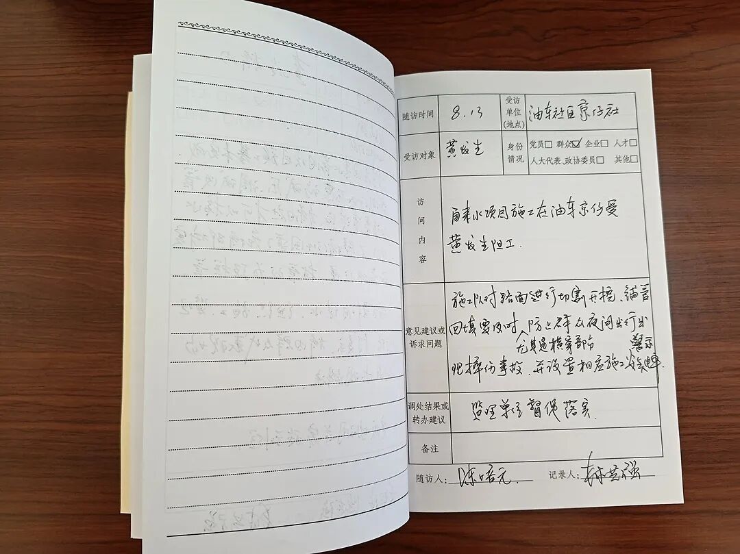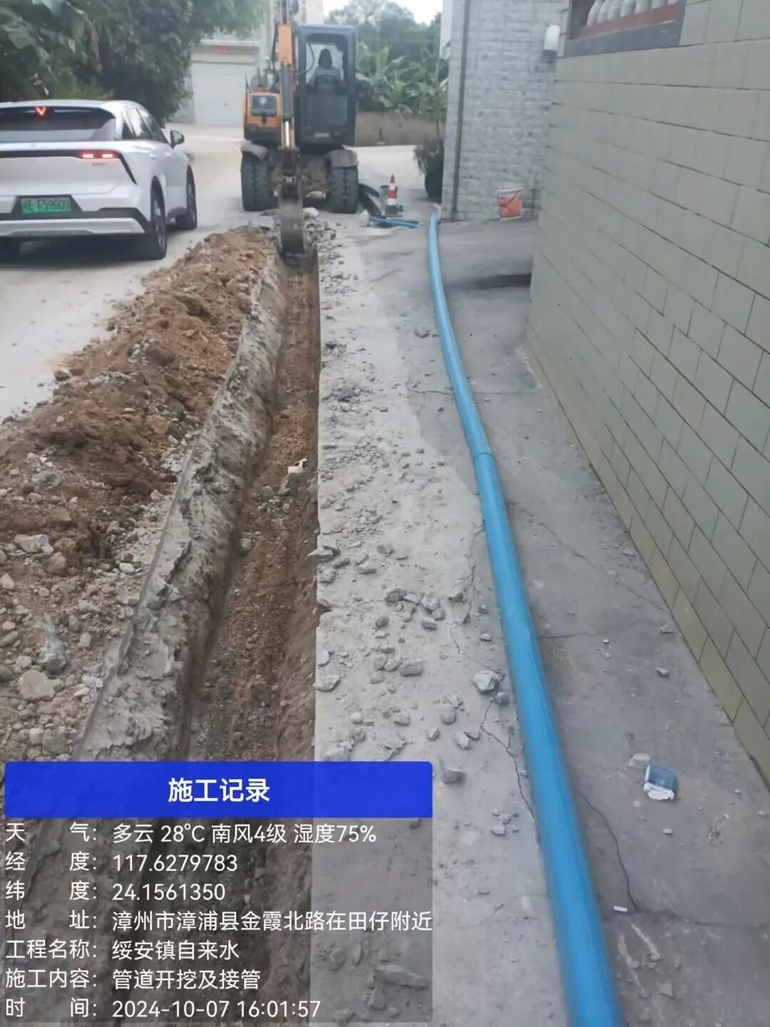 在油车社区施工期间,有群众反映,施工挖出的路面的管道坑存在交通安全及夜间摔伤隐患。接到反映后,林艺强立即协调施工队对路面进行切割开挖,要求施工队及时铺管回填,针对横穿村道处安装加固钢板,设置施工安全警示牌,并将此措施推广至所有施工村庄。