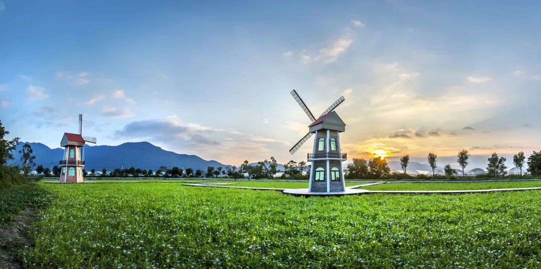 佳洲村坐拥漳江出海口红树林景观,金色稻田与彩色风车相映成趣,现代农业园区内四季果蔬飘香,游客可漫步木栈道赏荷塘月色,或参与果树采摘活动,感受独特的田园活力。