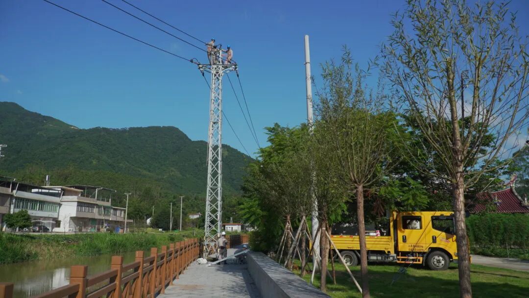 施工现场,工人们有条不紊地进行立杆、架线作业。此项工程带来的将是“安全”与“美观”的双重效益。线路升高后,将极大消除村民生产和出行中的安全风险,提高供电可靠性和稳定性。同时,原先如“蜘蛛网”般盘踞在空中的视觉污染将被清除,村庄天际线将变得清爽明朗,人居环境得到显著美化。