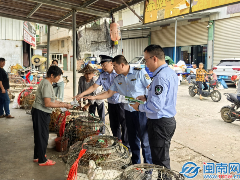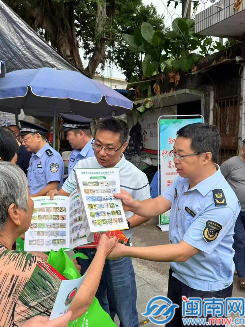 闽南网10月28日讯(通讯员 林晖 闽南网记者 柯嘉进 文/图)金秋时节,正值农村圩场人流高峰,近日,芗城区市场监督管理局联合天宝镇政府、区法院、检察院、自然资源局、公安分局等部门,在芗城区天宝镇开展保护野生动物主题宣传活动,以接地气的形式将普法知识送到群众身边,筑牢农村地区野生动物保护防线。
