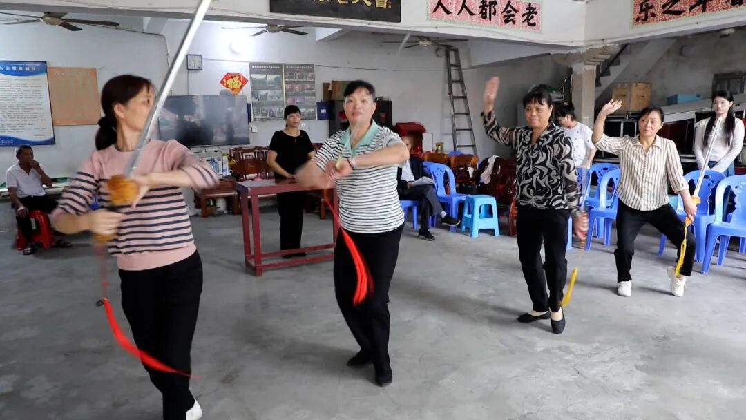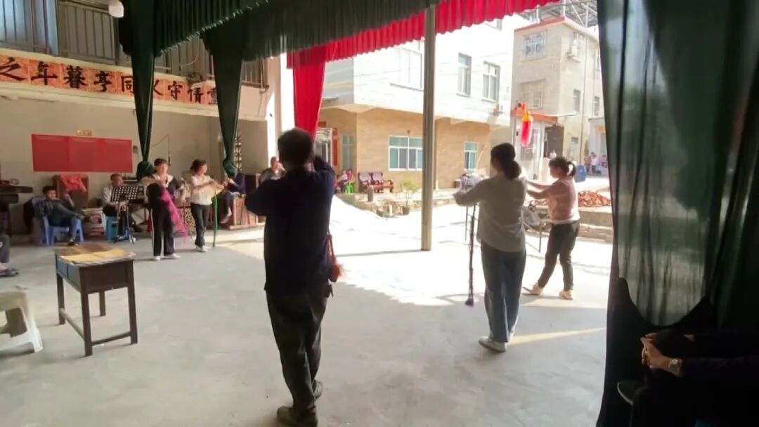 在火田镇佳园村佳栋自然村的幸福院里,飘出阵阵潮音。潮剧团的团员们正在排练潮剧《血染青虹剑》,老师正手把手地指导,耐心纠正演员的咬字发音。