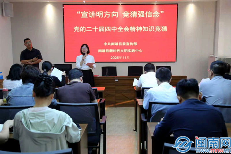 闽南网11月10日讯(通讯员 吴靖 闽南网记者 柯嘉进 文/图)11月6日,南靖县委宣传部组织开展专题学习系列活动,以“专家解读+知识竞答”的形式,让党的二十届四中全会精神入脑入心。