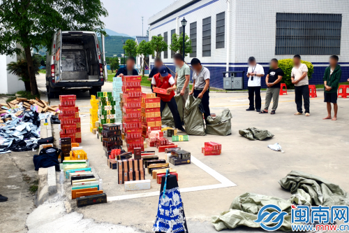 平和县局专卖人员与县公安部门清点查获的非法邮寄卷烟。曾俊勇摄