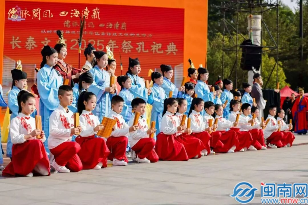 区委书记尤宇川在致辞中表示,长泰历来有尊孔尚文、尊师重教的传统,儒家文化在这里薪火相传、延绵不息。近年来,长泰深入践行习近平文化思想,持续推进文庙保护修缮与活化利用,使古老殿宇焕发时代新韵,让圣贤智慧融入当代生活。今天举行祭孔、尊孔、礼孔、敬孔活动,既是对孔夫子的景仰和纪念,也是对中华传统文化的传承与弘扬。长泰将以此次活动为契机,认真学习借鉴各地的好经验好做法,持续加强对以儒家文化为代表的中华优秀传统文化的保护研究和利用,深入开展交流合作,进一步探索文物遗产“活态传承”新路径,共同推动儒家文化开枝散叶、泽润四海,让中华优秀传统文化绽放出更加璀璨的光彩!