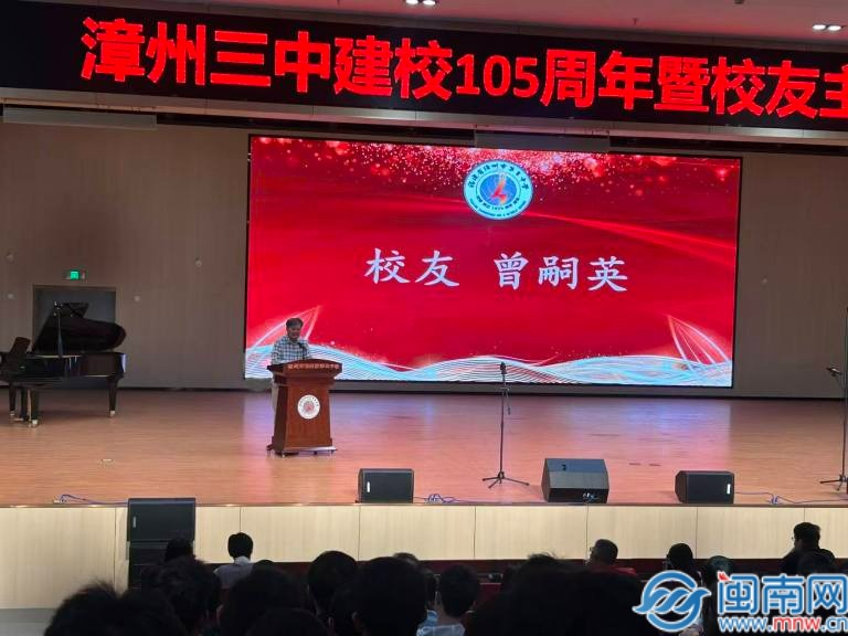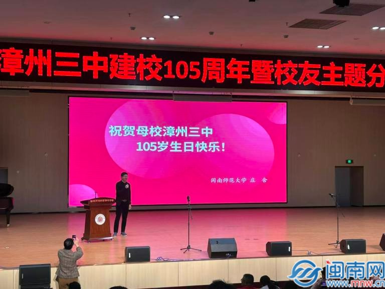 闽南网11月29日讯(通讯员 郑淑蓉 蓝毅斌 闽南网记者 张恩培)11月27日下午,漳州三中龙文校区进德礼堂内洋溢着喜庆与温馨的氛围,学校建校105周年校友主题分享会在此隆重举行。漳州市教育局副局长黄勇长、兄弟学校代表、各界校友、荣休教师和师生员工代表齐聚一堂,共庆三中华诞,共话三中精神。