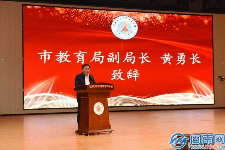 黄勇长副局长在致辞中充分肯定学校百年办学成就,希望漳州三中以105周年校庆为新的起点,深入学习贯彻习近平总书记关于教育的重要论述,大力弘扬百年老校的优良传统,在教育教学改革中勇当先锋,在藏生培养、排球训练、科学教育等特色品牌打造上精益求精,努力培养更多具有家国情怀、创新精神和实践能力的时代新人。