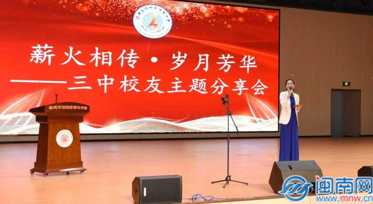 校友分享会以“薪火相传·岁月芳华”为主题,采用“推荐官引荐+校友分享”的形式,邀请不同年代、不同领域的四位校友代表,讲述三中故事,诠释三中精神。校党委书记庄清寿作为校友推荐官推荐曾嗣英、庄舍两位校友,校党政办副主任曾梅玲作为第二位校友推荐官推荐范大连校友与学生代表郑雨欣。