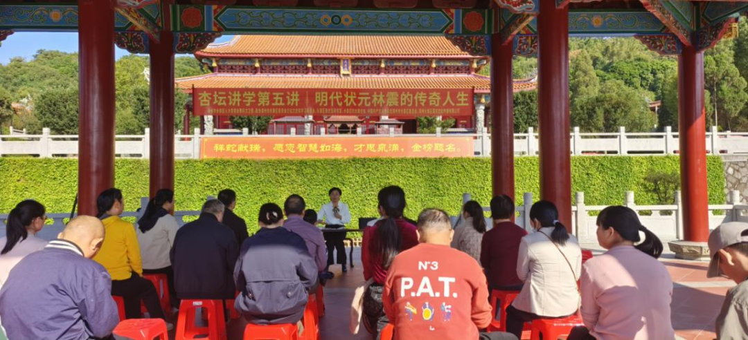 2025年11月23日,史志室联合多部门在长泰文庙举办“杏坛讲学”,向游客讲述明代状元林震传奇人生,并针对状元文化进行交流分享。