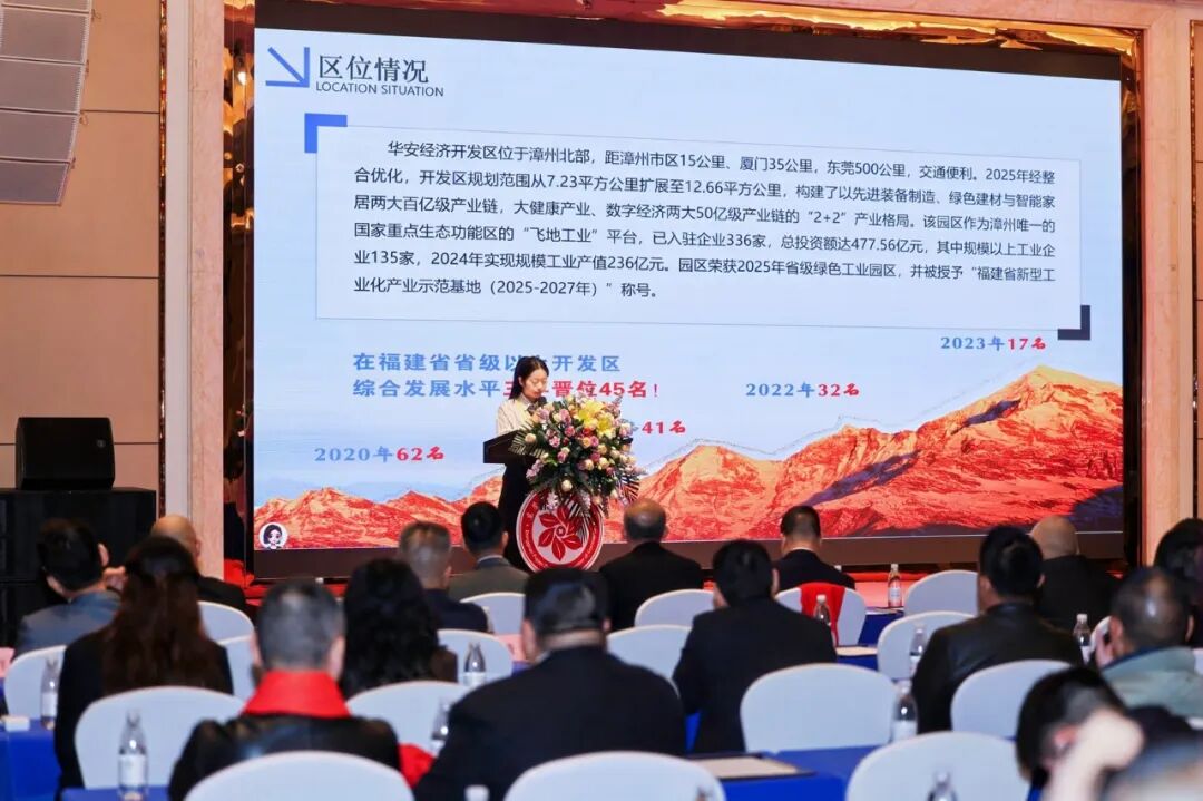 1月3日,东莞市福建漳州商会换届就职典礼盛大启幕。华安县作为两个县区代表精彩亮相,首先登台开展专题招商推介,随后展播华安宣传视频,以精准推介宣传优势,用生动影像展示魅力,向与会企业家全方位呈现华安的投资潜力与发展活力。