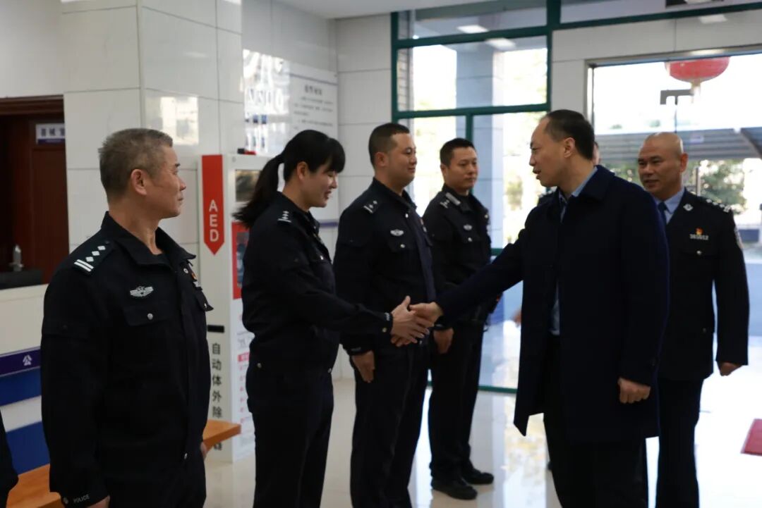 1月10日,在第六个中国人民警察节到来之际,华安县委书记廖海军看望慰问我县基层一线公安民警,代表县委、县政府致以节日问候,勉励大家深入学习贯彻习近平总书记关于新时代公安工作的重要论述,牢记习近平总书记重要训词精神,深入践行“对党忠诚、服务人民、执法公正、纪律严明”总要求,忠实履行新时代使命任务,为奋力谱写中国式现代化华安篇章保驾护航。