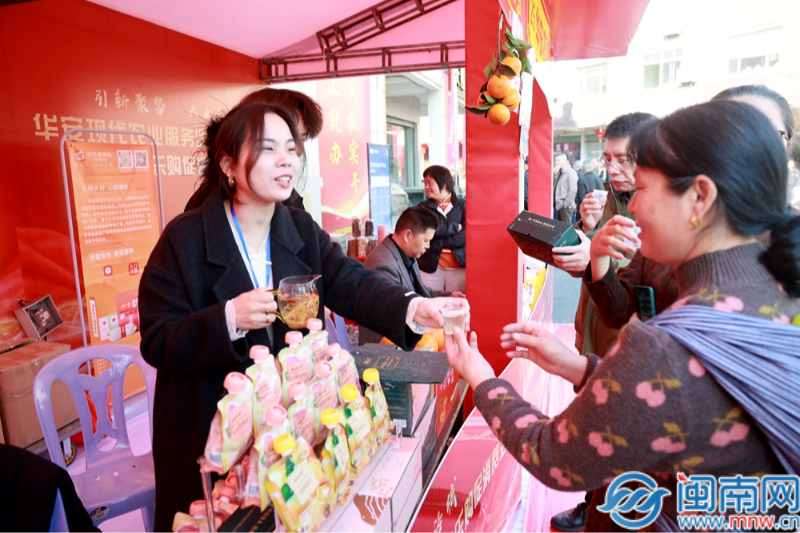 闽南网1月16日讯(通讯员 汤平 闽南网记者 柯嘉进 文/图)1月16日,一场“全闽乐购”促消费活动在华安奇石城火热开展。当天的活动集农特产品展销、美食品鉴、直播推介于一体,现场人头攒动,游客们争相品尝购买。