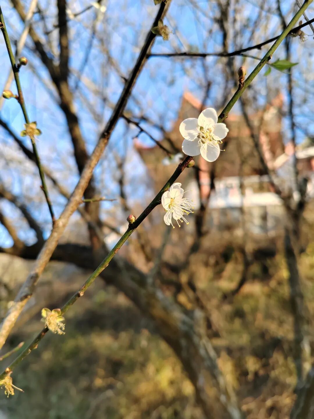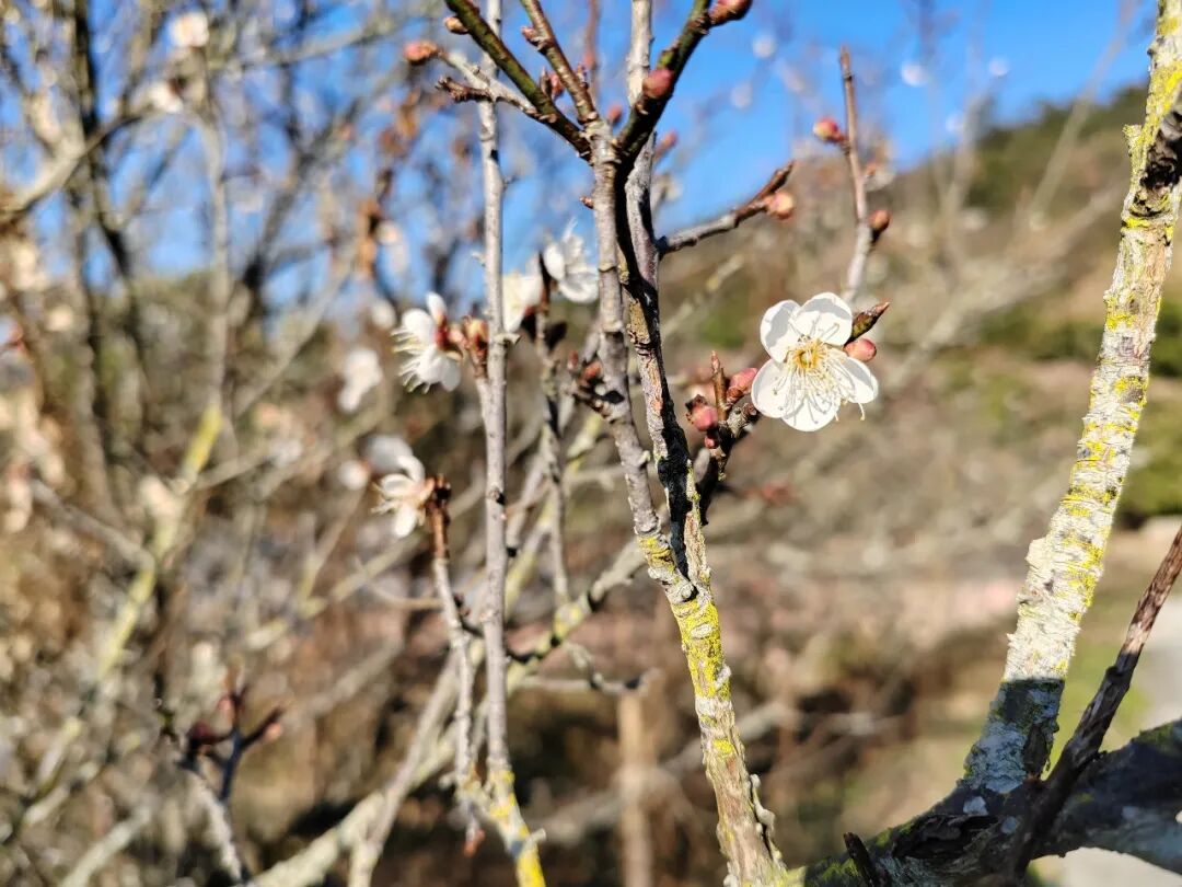 白梅缀满枝头,风过暗香浮动